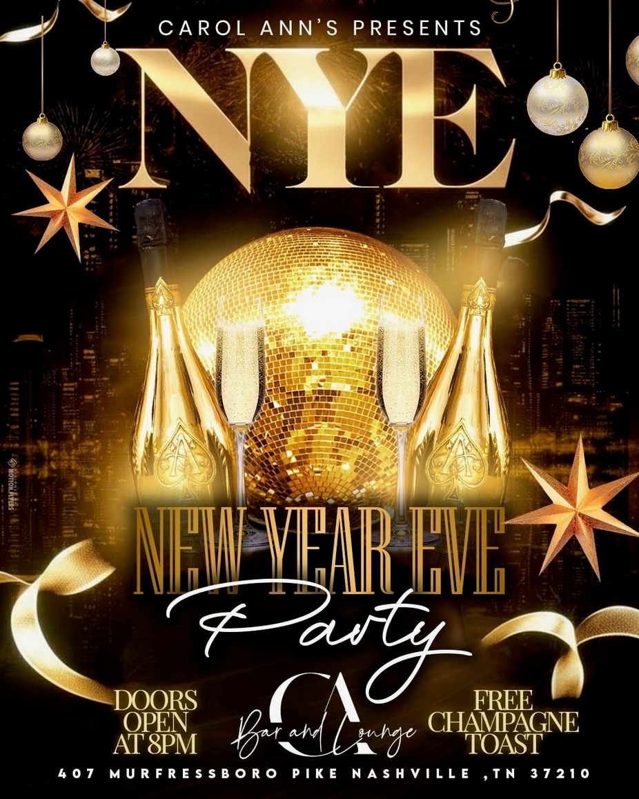 Carol Ann's Presents: New Year's Eve Party! Doors Open at 8pm Free Champagne Toast at Midnight Celebrate the New Year with us and join us on New Year's Eve!